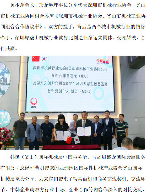 中國深圳—韓國釜山機(jī)械行業(yè)企業(yè)對接交流會(huì)成功舉行